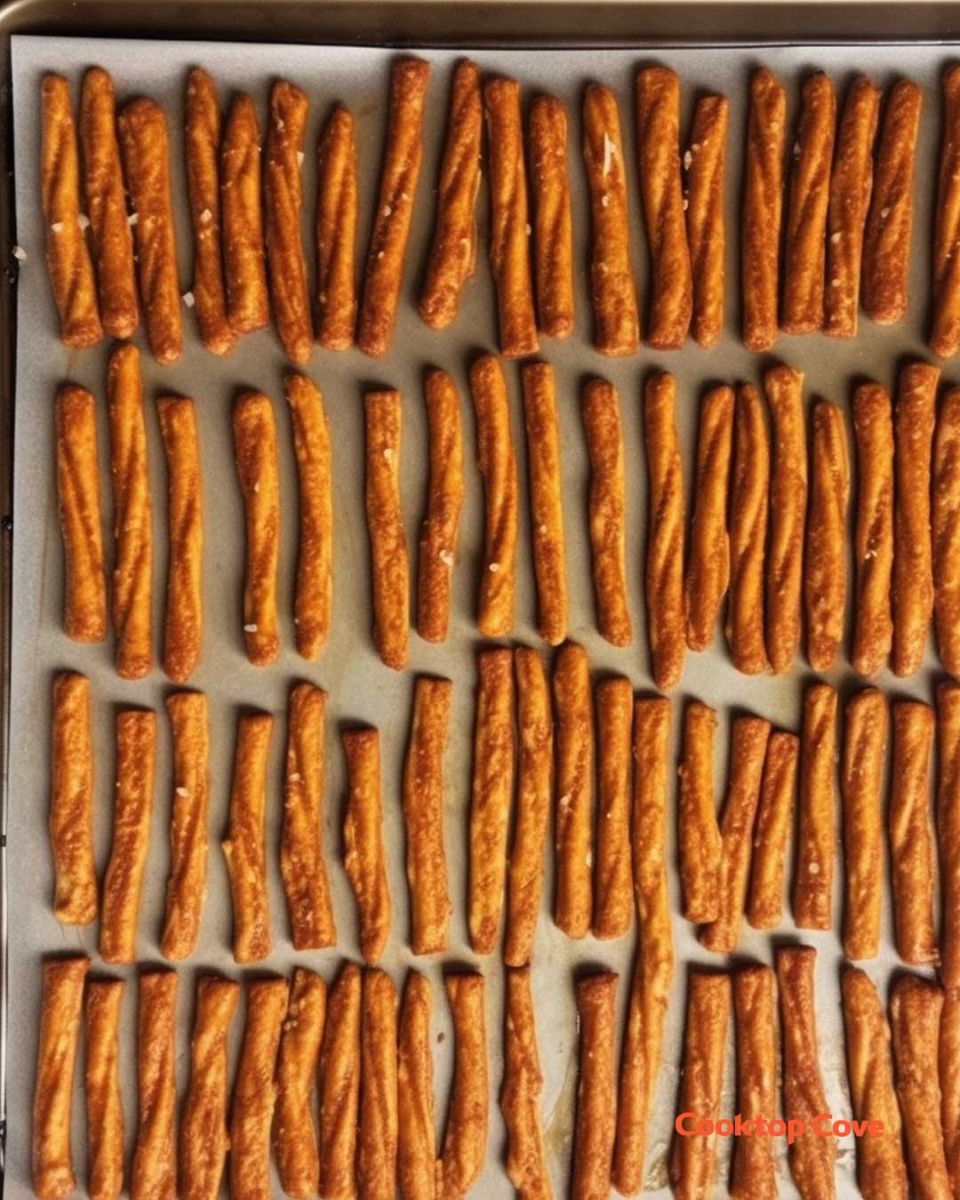 2. Arrange pretzel sticks evenly on the sheet in rows.