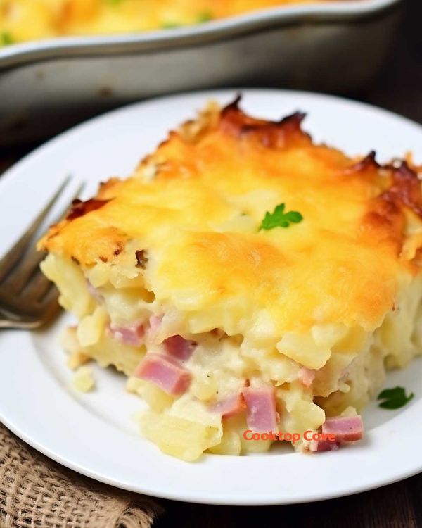 Remove from the oven and let it cool for a few minutes before serving. Enjoy your delicious Ham and Cheese Hash Brown Casserole!