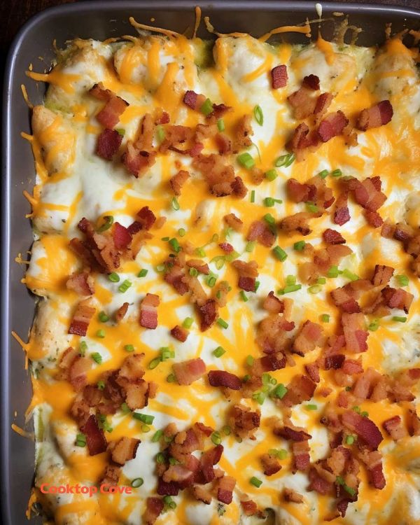 Enjoy this delectable Chicken Ranch and Bacon Casserole with its creamy texture, savory flavors, and comforting appeal. It's a crowd-pleasing dish that will leave everyone wanting seconds.
