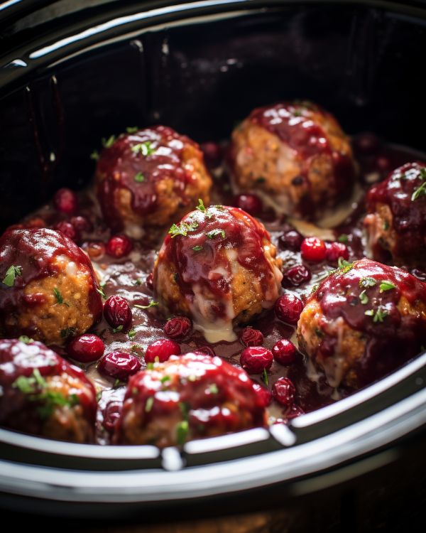 Enjoy your slow cooker cranberry-stuffing meatballs!