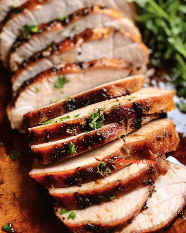 9. Slice the pork roast, drizzle with the balsamic glaze, and serve warm.