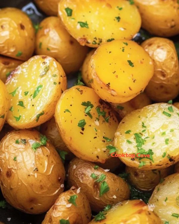 7. Enjoy your Roasted Garlic Butter Baby Potatoes while hot and crisp for the best experience!