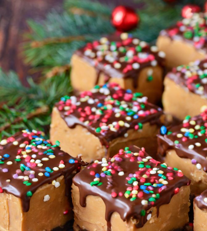 10. Serve and enjoy your festive and delicious No-Bake Peanut Butter Bars with your choice of beverage or additional sides.