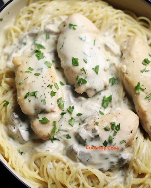 Creamy Angel Chicken & Pasta Bake is a delightful, comforting dish that can brighten up a family dinner table with its rich, creamy sauce and tender chicken, all served over a bed of light angel hair pasta. This dish, while not rooted in any particular culinary tradition, takes inspiration from Italian-style cream sauces and the American love for hearty, baked pasta dishes. It is a perfect blend of American convenience and Italian flavors, making it a cherished recipe for many who seek the warmth of a home-cooked meal.