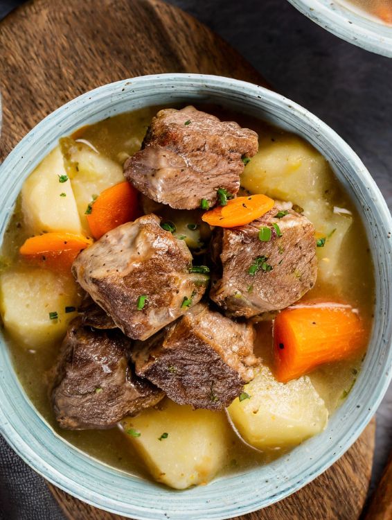 5. Bring everything down to a gentle simmer. Let it cook until the beef is as tender as a mother’s hug and the veggies are just right.