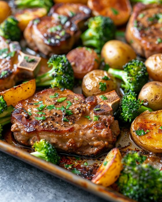 Sheet Pan Pork Chops with Potatoes and Broccoli