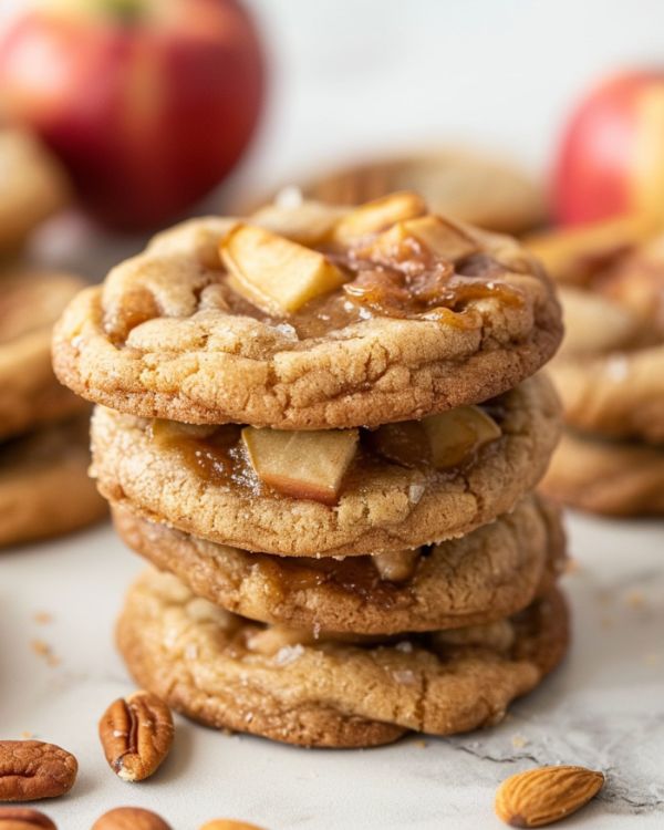 Apple pie cookies are perfect on their own, but for an extra touch of indulgence, serve them with a dollop of whipped cream or a scoop of vanilla ice cream. Pairing these cookies with a warm cup of cider or a glass of milk also makes for a comforting snack or dessert.