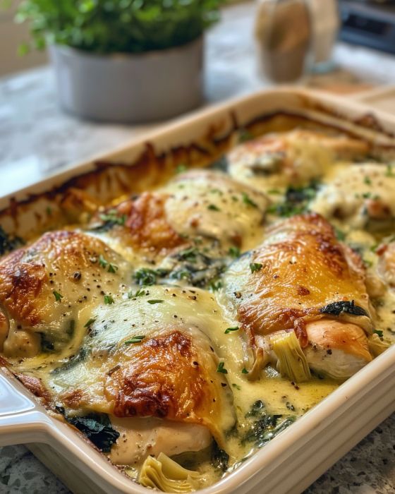 Spinach and Artichoke Caesar Chicken Bake