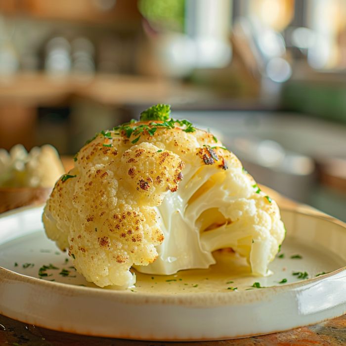 This slow cooker whole cauliflower can be served as a delightful vegetarian centerpiece or as a hearty side. It pairs impeccably with a crisp green salad or some sautéed greens, like kale or spinach. For a heartier meal, consider serving it alongside quinoa or couscous, which nicely soaks up the rich flavors of the cooking juices. A drizzle of tahini sauce or a sprinkle of your favorite herbs can further elevate this dish.