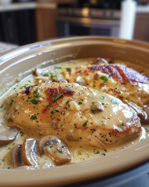 Slow Cooker Creamy Caesar Chicken with Mushrooms