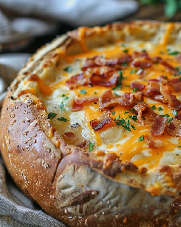 Serve hot, garnished with chopped chives, additional shredded cheese, and extra bacon bits if desired.