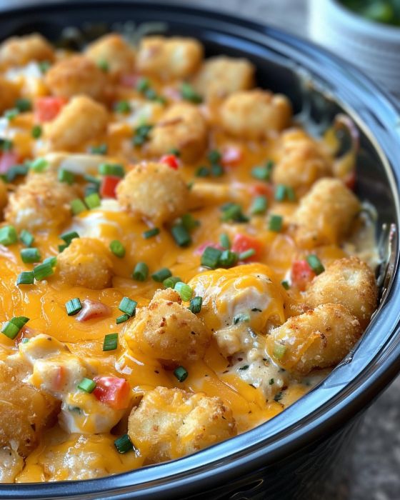 Slow Cooker Creamy Ranch Chicken Tater Tot Casserole