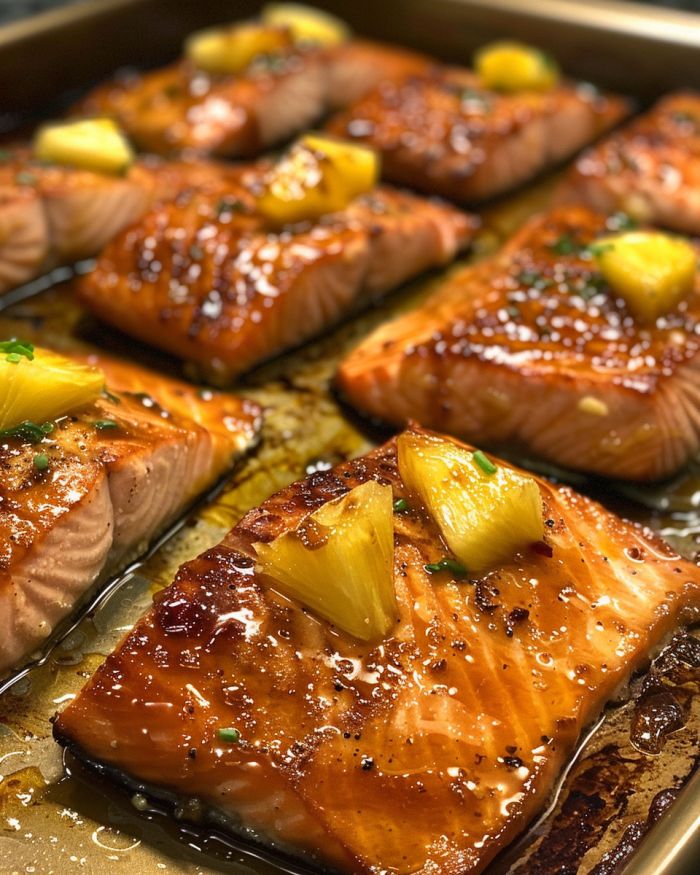 For a different twist, you can substitute the pineapple with mango or even peach slices. If you have picky eaters, you might want to serve the pineapple on the side instead of on top of the salmon to give them the option. For those who enjoy a bit of heat, adding a teaspoon of sriracha or a sprinkle of chili powder to the honey mixture can give the salmon an extra kick. If fresh pineapple is not available, canned pineapple chunks (drained well) work just as well.