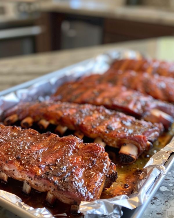 7. Remove the ribs from the oven and carefully remove the foil.