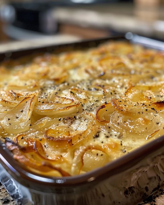 7. Return the dish to the oven and bake for an additional 15-20 minutes, or until the sauce is bubbly and the top of the onions are golden brown.