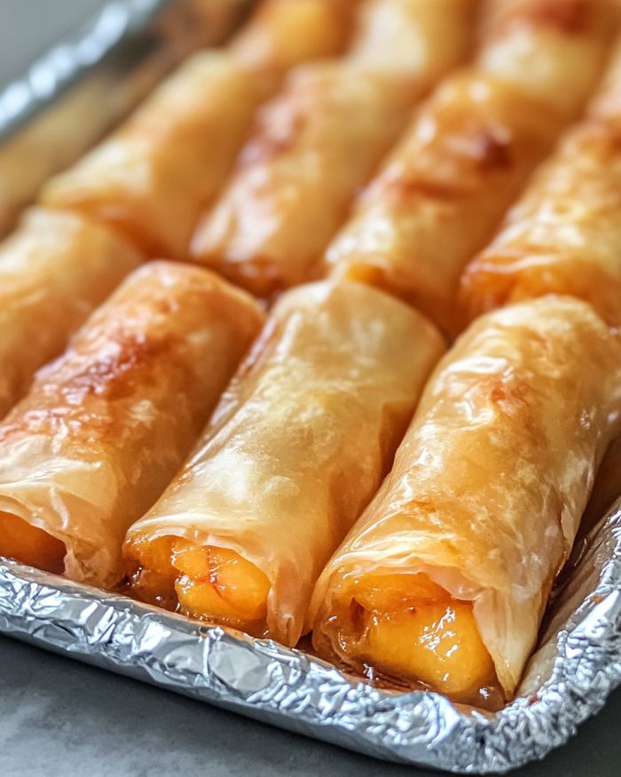 Baked Peach Pie Rice Paper Rolls
