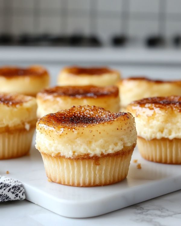 Before serving, sprinkle about a teaspoon of sugar on top of each cupcake. Use a kitchen torch to caramelize the sugar until it forms a golden crust. If you don’t have a torch, you can place them briefly under a broiler, keeping a close eye to prevent burning.
