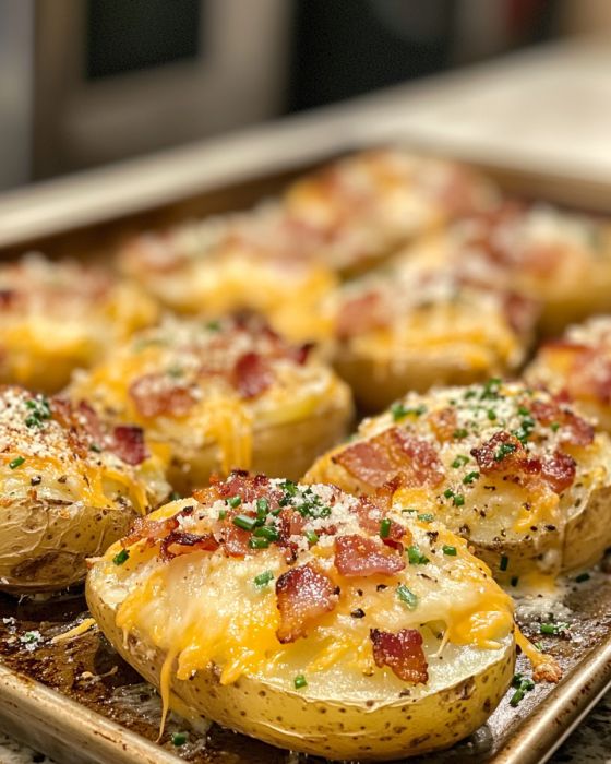 Twice-baked potatoes are a comforting and hearty dish that brings warmth to any family meal. Originating as a classic American side, these potatoes are a favorite for their creamy texture and savory flavors. Adding bacon and chives gives them a delightful twist that will make them a hit at your dinner table. They're perfect for a cozy family dinner or a potluck with friends, offering a little something special that everyone will enjoy.
