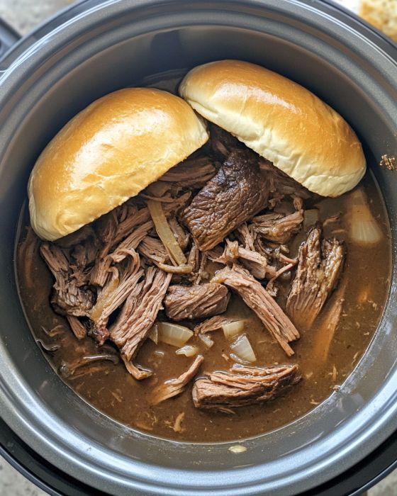 Slow Cooker 6-Ingredient French Dip Sandwiches