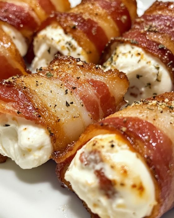 These bacon roll-ups pair beautifully with a fresh green salad or a bowl of hearty tomato soup. For a more indulgent meal, consider serving them alongside scrambled eggs and roasted potatoes for a satisfying brunch spread. A glass of freshly squeezed orange juice or a cup of hot coffee would complement the flavors wonderfully.