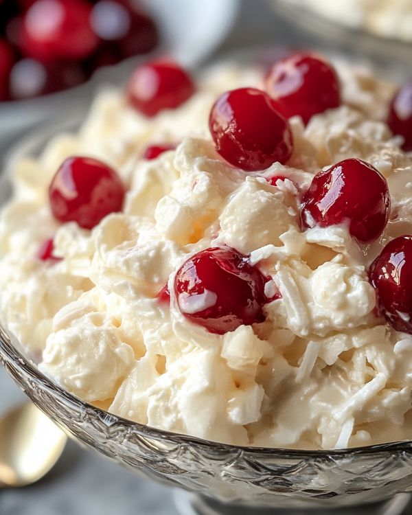 Coconut Ambrosia Salad with Maraschino Cherries
