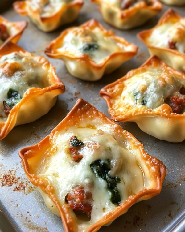 For a vegetarian version, replace the sausage with sautéed mushrooms or crumbled tofu. You can also experiment with different cheeses, such as mozzarella or feta, for a unique flavor profile. If you prefer a bit of heat, add a pinch of red pepper flakes to the filling. These wontons can also be steamed instead of baked for a softer texture.