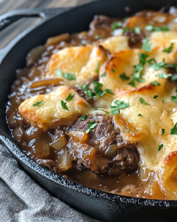 French Onion Pot Roast is a comforting dish that brings warmth and flavor to your table, perfect for those chilly Midwestern evenings. This recipe combines the savory depth of caramelized onions with the tender, juicy goodness of a slow-cooked roast. By using a cast iron skillet, you get a beautiful sear on the meat, locking in all those delicious juices. The addition of onion soup mix simplifies the process, making it a go-to for busy families who still want a home-cooked meal. It's a dish that brings everyone together, filling the house with an aroma that says 'welcome home.'