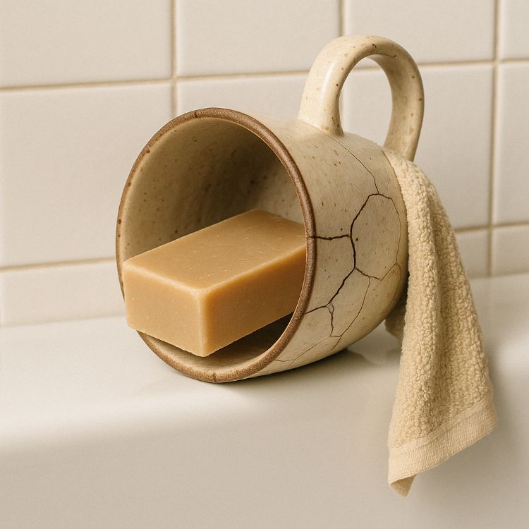 A cracked mug can serve as a rustic soap dish in your bathroom or kitchen. Place the mug on its side and secure it with a strong adhesive if necessary. The handle can be used to hang a washcloth, making it both a functional and decorative addition to your sink area.