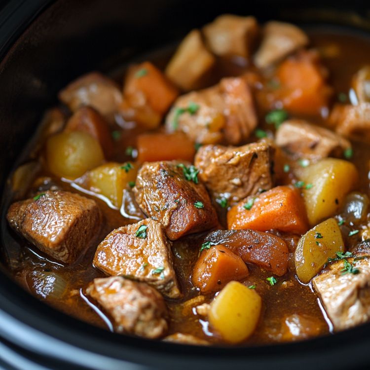 6. Cover and cook on low for 6-8 hours, or until the pork is tender and the potatoes are cooked through.