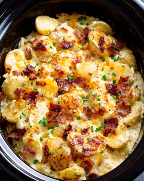 Slow Cooker Cheesy Scalloped Potatoes with Bacon