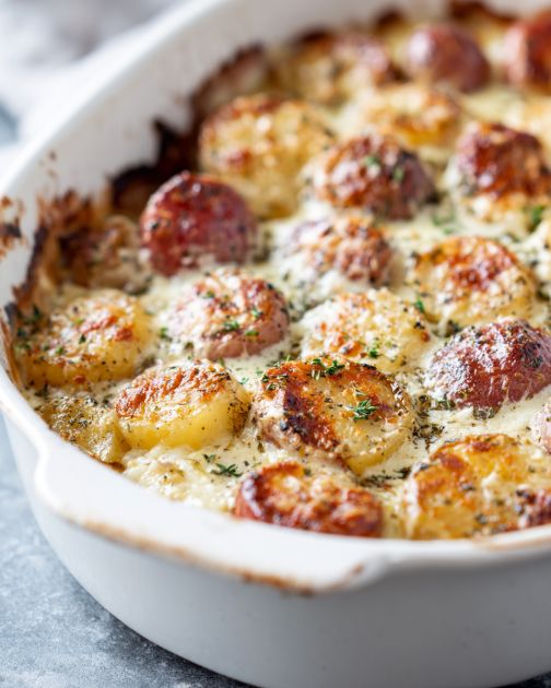 Bake for 15–20 minutes, or until the edges are bubbly and the tops of some potatoes have a light golden color. This step lets the flavors soak in and gives the potatoes that cozy, baked texture.