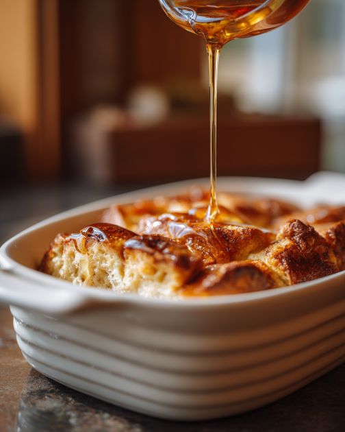 To keep this recipe simple but still flexible for real-life schedules, you can tweak it a few ways. For extra richness, swap part of the milk for half-and-half or heavy cream. If you don’t have enough maple syrup on hand, you can use 1/4 cup maple syrup and 1/4 cup brown sugar instead, whisking the sugar into the milk until dissolved. For a make-ahead option, assemble the bread and maple-milk mixture in the dish, cover tightly, and refrigerate for up to 8 hours, then bake straight from the fridge (add 5–10 extra minutes of baking time). You can also change up the bread: brioche or challah will give you a softer, more custardy texture, while a rustic loaf will be a bit chewier. If you’re okay adding more than three ingredients, a pinch of salt, a splash of vanilla, or a sprinkle of cinnamon over the top before baking takes the flavor up a notch without adding much effort. And if you’re cooking for one or two, you can halve the recipe and bake it in a small loaf pan or a couple of ramekins for individual portions that reheat nicely during the week.