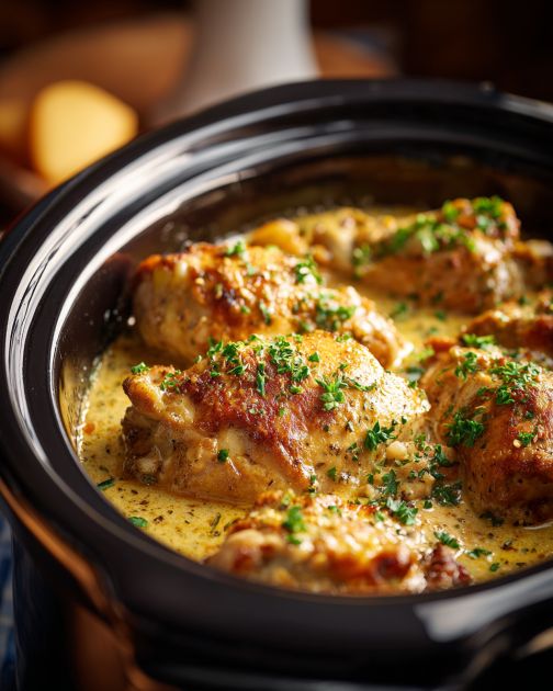Slow Cooker Amish 4-Ingredient Golden Chicken Casserole