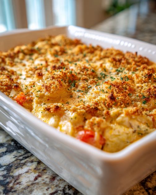 Let the casserole rest for 5–10 minutes before serving. This helps the sauce thicken slightly and makes it easier to scoop.