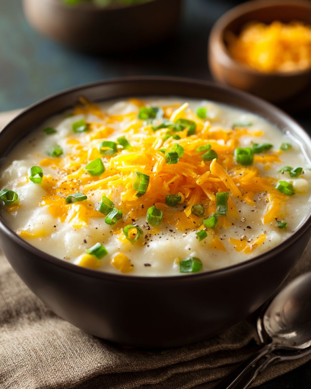 To keep this weeknight-friendly, you can prep the potatoes the night before: peel, chop, and store them in a container covered with water in the fridge so they don’t brown. In the morning, just drain and add them to the slow cooker. For a vegetarian version, use vegetable broth and swap the cream of potato soup for a vegetarian condensed potato or cream of celery soup. If you like more protein, stir in 1–2 cups of cooked, shredded rotisserie chicken or diced ham during the last 30 minutes of cooking. For extra flavor without adding more ingredients, sprinkle in a teaspoon of garlic powder or smoked paprika when you add the broth. If you need it dairy-free, use a dairy-free condensed soup, swap the cream for a rich, unsweetened oat or coconut milk, and choose dairy-free toppings. To make it thicker, reduce the broth to 3 cups or let the chowder sit uncovered on WARM for 15–20 minutes before serving. And if you’re cooking for a smaller household, this chowder reheats well—store it in the fridge for up to 3 days, and reheat gently on the stove with a splash of broth or milk to loosen it up.