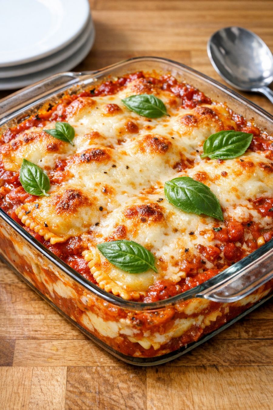Baked ravioli casseroles are very much a modern American comfort food—somewhere between classic Italian baked pasta and the Midwestern hotdish. Instead of boiling and layering fresh pasta sheets, we lean on frozen cheese ravioli, which are essentially little stuffed pasta pillows ready to behave like lasagna noodles. This three-ingredient version is wonderfully straightforward: you’re building a cozy, cheesy bake straight from the freezer to the oven, with almost no prep and no chopping. It’s the kind of weeknight dish that works when you’re tired, short on time, or cooking for people who just want something saucy, cheesy, and familiar. You still get that satisfying, bubbling top and tender pasta, but with a fraction of the effort and dishes.