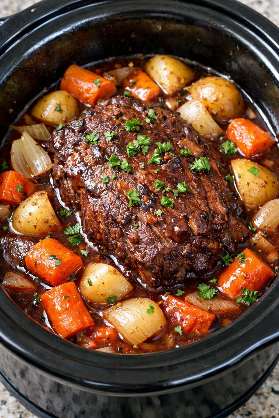 Out here in the country, a beef roast in the slow cooker is the sort of supper that quietly takes care of you while you go about your day. This version, with a good splash of red wine, reminds me of the Sunday dinners my mother used to make when company was coming and the good dishes came down from the cupboard. Back then, using wine in cooking felt a little fancy for our small Midwestern town, but folks soon realized it just made the meat richer and the gravy deeper and more comforting. You make a roast like this when you want the house to smell like home by midafternoon, when you’re expecting family to tumble in from the cold, or when you simply need a meal that feels like a hug at the end of a long day. It’s simple, sturdy farm cooking with just enough elegance to make an ordinary night feel special.
