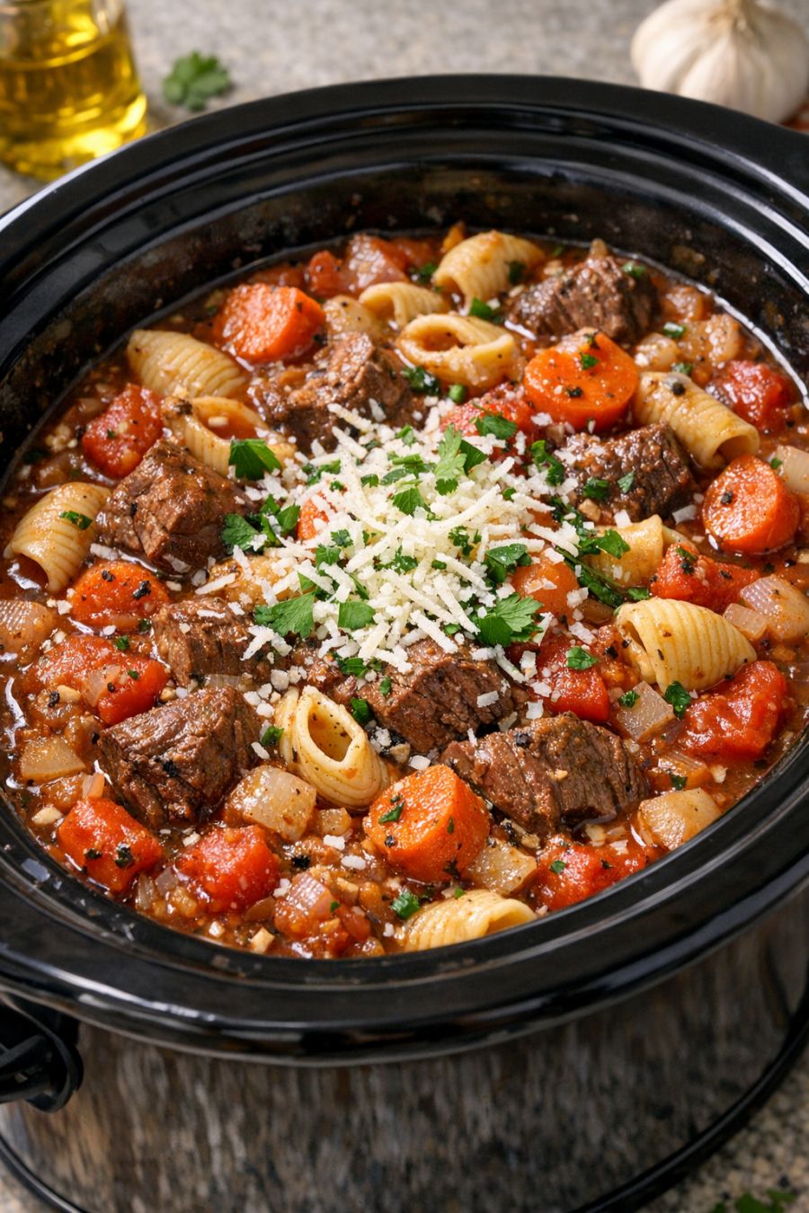 Slow Cooker Beef & Pasta Stew