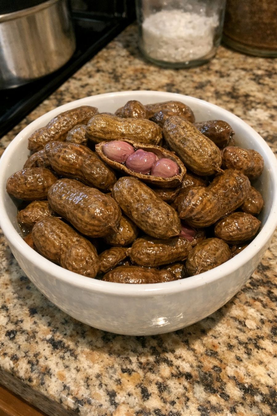 If you’d like to play around a bit while still keeping the spirit of this simple recipe, there are a few easy paths to take. For a deeper, more robust flavor, you can swap a portion of the water for a mild broth, or toss in a couple of bay leaves and a cracked clove of garlic—just small touches that echo the way we season pots of beans in the Midwest. If you’re curious about a more Southern roadside flavor, add a spoonful of Cajun seasoning or a pinch of red pepper flakes to the pot; start light, because the heat intensifies as the peanuts sit in the brine. For folks watching their salt, begin with less and let the peanuts soak in the warm liquid longer after cooking, tasting as you go, rather than over-salting from the start. Texture is a matter of personal preference: some like their boiled peanuts quite soft, almost like creamy beans, while others prefer them with a bit more bite—so don’t be afraid to pull a few out at different times until you find the sweet spot for your household. And if you can only find raw, dried peanuts instead of fresh green ones, just plan on a longer simmer and a good soak ahead of time; with patience and a gentle stove, they’ll still turn into a comforting, old-fashioned snack that feels right at home on any Midwestern table.