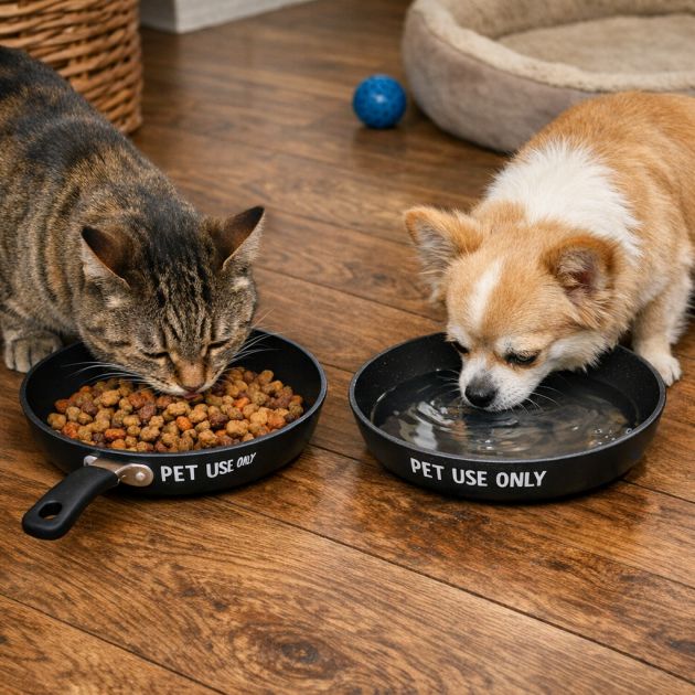 8. Give Nonstick Pans a Second Life as Pet-Only Food and Water Dishes
