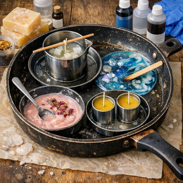 7. Reuse Damaged Pans as Craft Stations for Candles, Soap, and Resin Projects