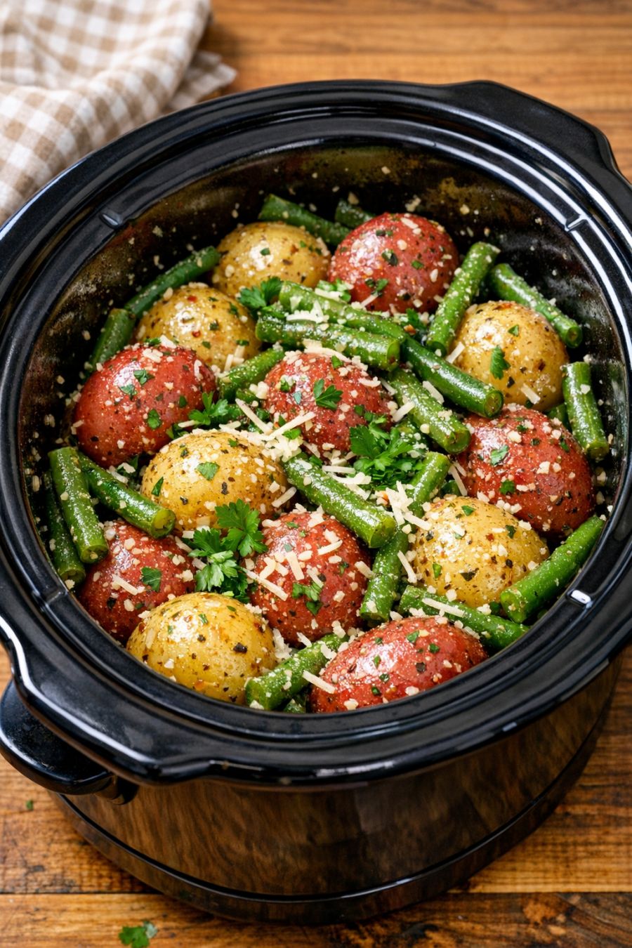 3-Ingredient Slow Cooker Italian Potatoes & Green Beans