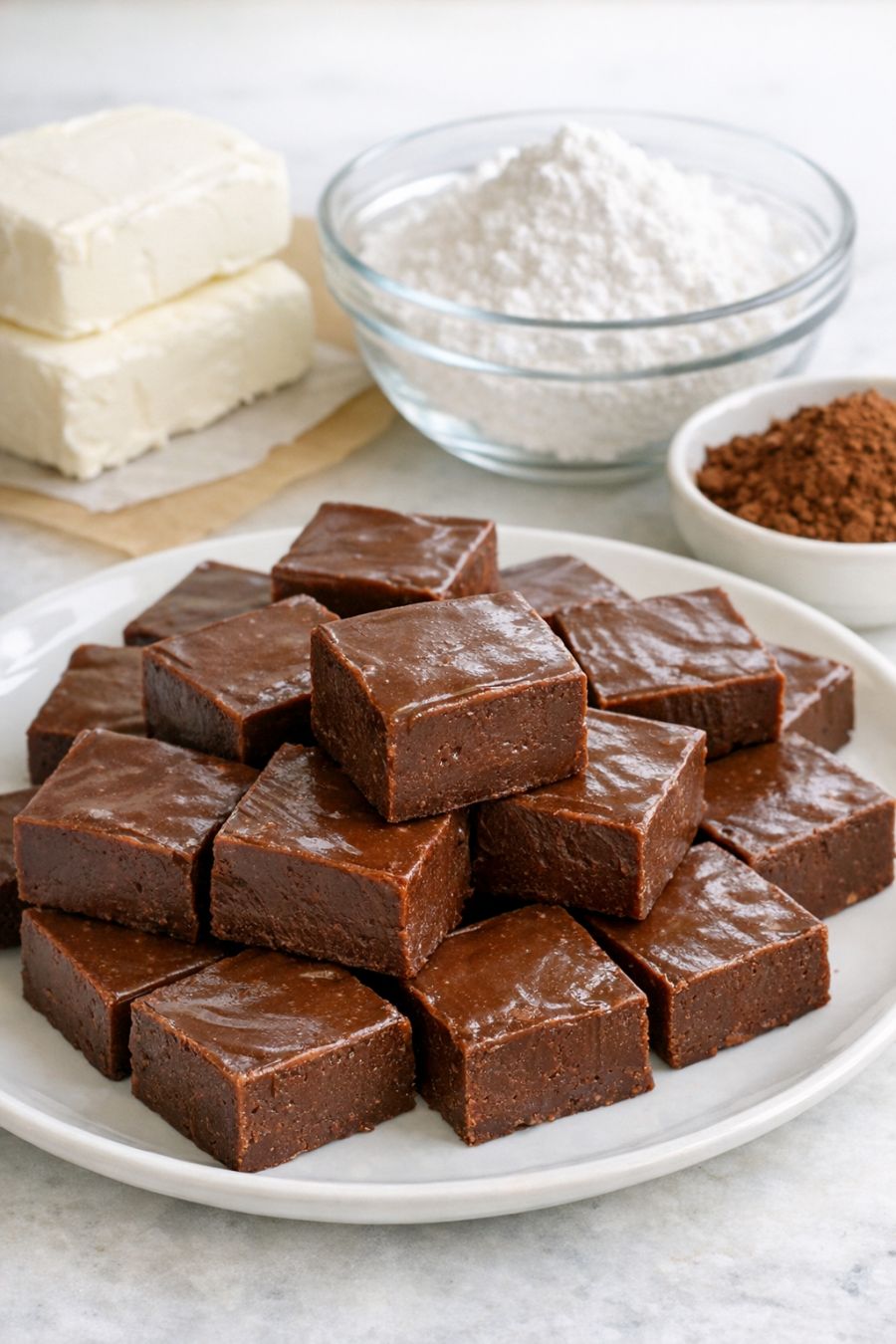 Fudge has roots in late 19th-century American cooking, when confectioners were experimenting with sugar temperatures and accidentally “fudged” a batch of caramels—hence the name. Traditional fudge can be a bit fussy, often relying on a candy thermometer and precise timing. This slow cooker cream cheese chocolate fudge strips away the complexity and pares things down to just three ingredients, leaning on cream cheese for body and cocoa powder for deep chocolate flavor. It’s the kind of recipe you make when you want something indulgent, homemade, and comforting without hovering over the stove. The texture lands somewhere between classic fudge and a truffle, making it an easy, crowd-pleasing sweet to share at potlucks, holiday gatherings, or just to keep in the fridge for an after-dinner bite.