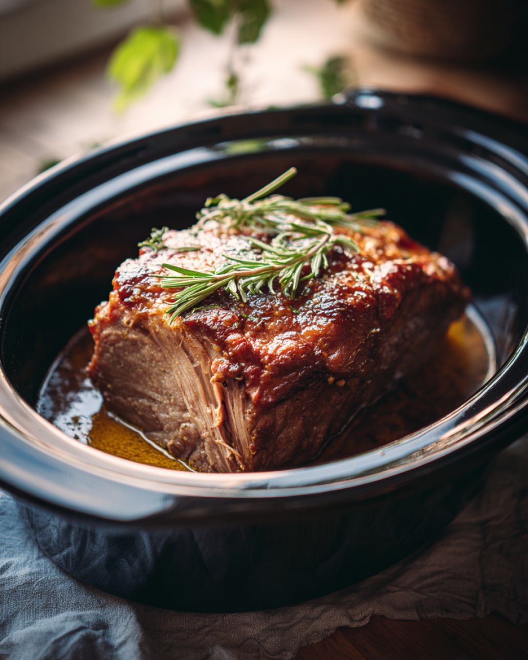 For a slightly smokier, more rustic flavor, stir in a tablespoon of grainy mustard along with the Dijon. If you’re using a leaner cut like pork loin and want extra moisture, add 1/4 cup of chicken broth to the slow cooker at the beginning. You can also tuck a few peeled garlic cloves around the roast for a deeper, more savory note—my mother almost never cooked pork without a little garlic nearby. If you prefer a thicker sauce, ladle some of the cooking juices into a small saucepan, whisk in 1–2 teaspoons of cornstarch, and simmer until slightly thickened before pouring it back over the meat. This recipe adapts nicely to what you have on hand: yellow mustard gives you that classic diner-style tang, while a spicy brown mustard will add a gentle heat. Leftovers make wonderful sandwiches the next day; just pile the pork on a toasted bun, add a slice of cheese if you like, and warm it in a low oven until everything is cozy and melty.