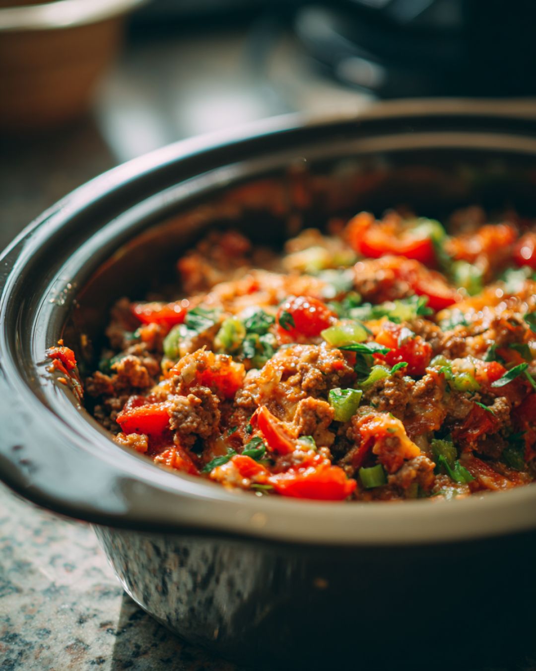To nudge the flavor in different directions, you can easily play with this basic formula without losing its simple charm. For a spicier version, use hot pork sausage and a can of extra-hot diced tomatoes with chiles, and stir in a pinch of crushed red pepper. If you prefer things milder, choose mild sausage and regular diced tomatoes, and you can even add a splash of milk to soften the flavor and texture. A handful of shredded cheddar or pepper jack stirred in at the end will give the dip a little more body and a homemade touch. If you’re trying to stretch the dip for a larger crowd, stir in a drained can of black beans or a cup of thawed corn kernels—both are very at home in this mixture. You can also swap the canned tomatoes with chiles for plain diced tomatoes and a small can of chopped green chiles if that’s what you have in the pantry. For easier serving at parties, keep the dip on WARM and give it a good stir every 20–30 minutes so it doesn’t scorch around the edges, and set out a ladle so folks can spoon it into small bowls or over baked potatoes for a heartier option.