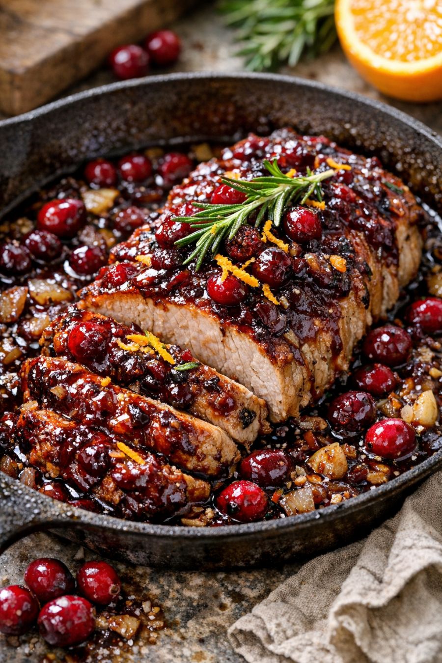 To keep this recipe flexible for busy weeks, there are a few easy tweaks you can make. If you prefer a less sweet sauce, reduce the brown sugar to 2 tablespoons or skip it entirely and let the cranberry sauce do the work. For more savory depth, add 1 tablespoon of Dijon mustard to the cranberry mixture before pouring it over the pork. You can also swap dried rosemary for dried thyme or a simple Italian seasoning blend—use whatever you already have in the pantry. If you’d rather use pork shoulder or pork butt, that works too; just plan on the higher end of the cook time, as those cuts are a bit fattier and take longer to get fall-apart tender. For a thicker, glossier sauce, remove the cooked pork, turn the slow cooker to HIGH, and whisk in a slurry of 1 tablespoon cornstarch mixed with 1 tablespoon cold water. Let it cook for 5–10 minutes until slightly thickened, then add the pork back in and toss to coat. Leftovers reheat really well and can be turned into sliders, grain bowls, or even a quick flatbread pizza with some goat cheese and red onion on top.