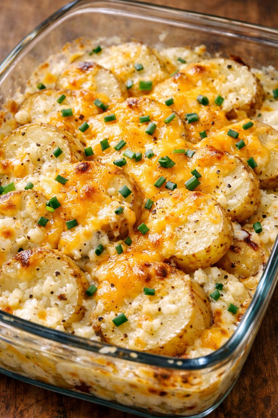 Let the casserole rest for about 10 minutes before serving so the creamy mixture thickens slightly and clings to the potatoes. Sprinkle with a few extra chopped chives for color, then scoop onto plates while it’s still warm and comforting.