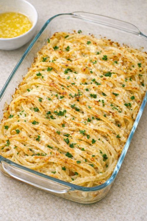 Oven-Baked Garlic Butter Parmesan Pasta Bake