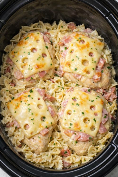 5-Ingredient Slow Cooker Chicken Cordon Bleu Bowtie Pasta