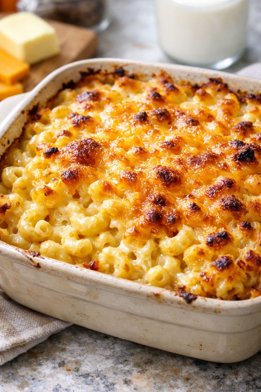 This is my true “I don’t know what to make” dinner: a no-boil, oven-baked mac and cheese that starts by pouring cold whole milk right over dry elbow macaroni in a ceramic casserole dish. With just three pantry staples—cheese, butter, and salt—plus the pasta and milk, you get a creamy, cozy meal without dirtying extra pots. It’s the kind of simple, small-town comfort food I grew up with and now lean on for busy weeknights and last-minute get-togethers.